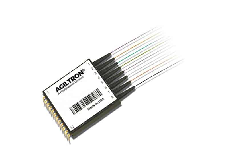 The Integrated Fiber Optical Tap Monitor Array (ITMA) is a multi-channel power monitoring device that integrates an array of individual fiber optical tap monitors in a compact format. The ITMA combines the functions of a low-percentage optical coupler and a photodiode, delivering low insertion loss and low dark current, with excellent temperature stability over a wide operating wavelength range. It features a standard 12/14-pin package for easy PCB mounting, with each channel equipped with two fibers. Each tap monitor has two fibers, one for input and another for output.